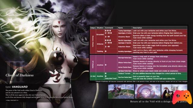 Cloud Dark is another particular character: after a certain period of being in the field, in fact, it will be surrounded and consumed by the darkness that will improve and enhance its attacks Daring. This certainly does not mean that in his normal Dark Cloud form he is a weak character, also because thanks to his EX Wave of Darkness ability he will be able to temporarily reach his empowered state at any momentor, thus taking advantage of improved attacks or firing a powerful laser beam.