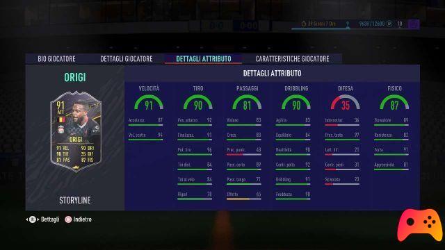 The least “greedy” option of the last level of the Season 6 pass is the one dedicated to Liverpool striker Divock Origi, a controversial player both on the pitch and within FIFA. Let me be clear, stats in hand the good Origi looks absolutely devastating, but some statistics highlight enormous critical issues. The first is related to balance and agility: with that body (190 for 75kg) 83 and 84 are too low values and, we are sure, combined with the 4-star skill item make him a player too little agile and reactive. With the current defenses, believe us, it would have a hard time even just to find the way to the door.