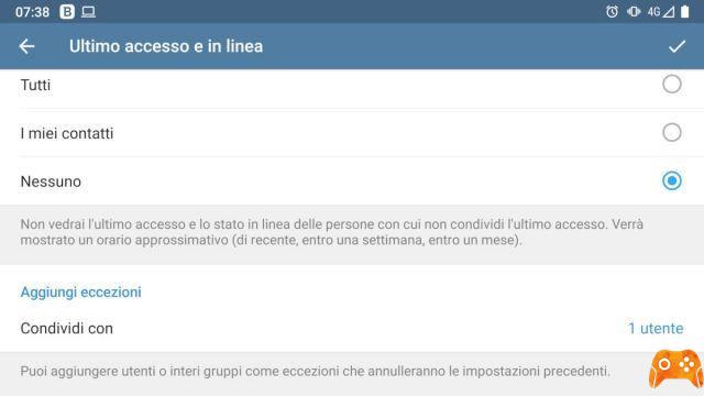 I know very well what question you are asking yourself right now, and it is the same one that also came to mind to me long ago: because the Telegram timetable is not completely hidden? In fact, you will have noticed, at least if you use WhatsApp, that when a user uses the enhanced privacy under his name, no status is reported.