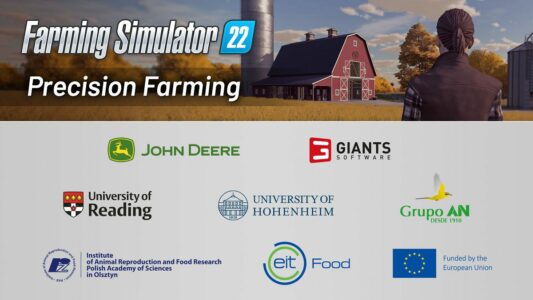 Le DLC Farming Simulator 22 Precision Farming porte le nom d'un projet qui vise à réduire l'impact environnemental de l'agriculture virtuelle. Lancé en 2020 par John Deere et financé par EIT Food, le projet est dans sa deuxième phase. EIT Food est la principale initiative d'innovation alimentaire en Europe. Ce projet est l'un des multiples efforts de l'initiative pour sensibiliser et améliorer les connaissances sur l'agriculture durable. Giants Software avec le DLC sur PC introduira plus de fonctionnalités au jeu.